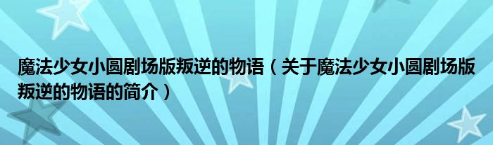 本文關于魔法少女小圓劇場版叛逆的物語的簡介就講解完畢,希望對大家有所幫助。