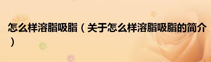 本文關于怎么樣溶脂吸脂的簡介就講解完畢,希望對大家有所幫助。