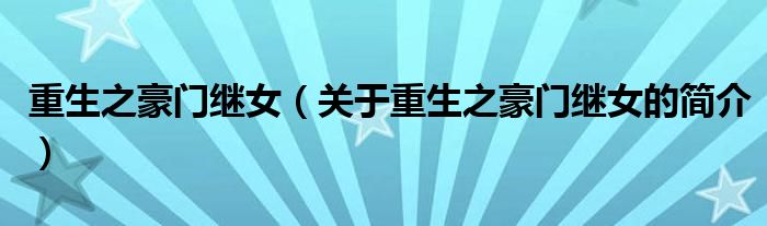 本文關于重生之豪門繼女的簡介就講解完畢,希望對大家有所幫助。