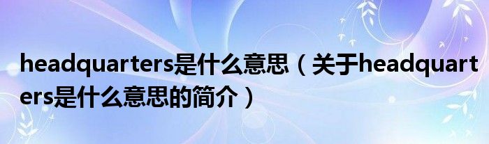 本文關于headquarters是什么意思的簡介就講解完畢,希望對大家有所幫助。
