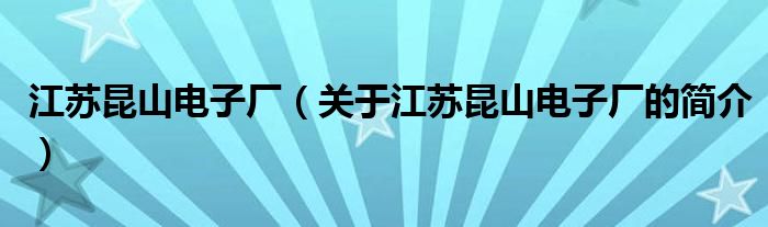 本文關于江蘇昆山電子廠的簡介就講解完畢,希望對大家有所幫助。