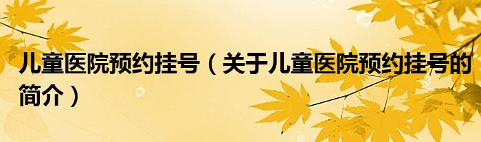 本文關于兒童醫院預約掛號的簡介就講解完畢,希望對大家有所幫助。
