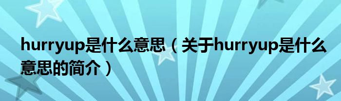 本文關于hurryup是什么意思的簡介就講解完畢,希望對大家有所幫助。