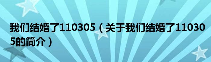 大家好,我們結婚了110305,關于我們結婚了110305的簡介很多人還不知道,現在讓我們一起來看看吧!