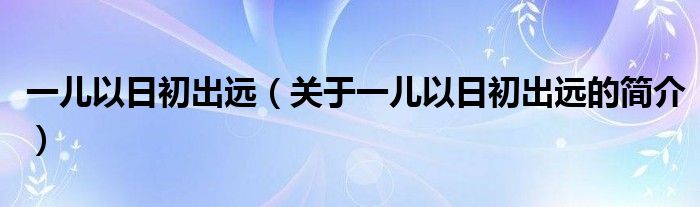 大家好,一兒以日初出遠(yuǎn),關(guān)于一兒以日初出遠(yuǎn)的簡介很多人還不知道,現(xiàn)在讓我們一起來看看吧!