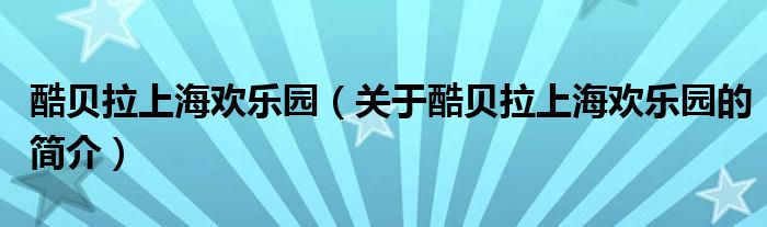 本文關于酷貝拉上海歡樂園的簡介就講解完畢,希望對大家有所幫助。