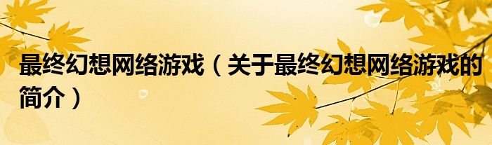 本文關于最終幻想網絡游戲的簡介就講解完畢,希望對大家有所幫助。