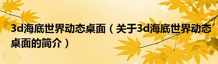 本文關于3d海底世界動態桌面的簡介就講解完畢,希望對大家有所幫助。