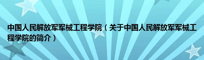本文關(guān)于中國人民解放軍軍械工程學(xué)院的簡介就講解完畢,希望對大家有所幫助。