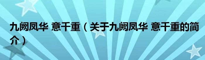 本文關于九闕鳳華 意千重的簡介就講解完畢,希望對大家有所幫助。