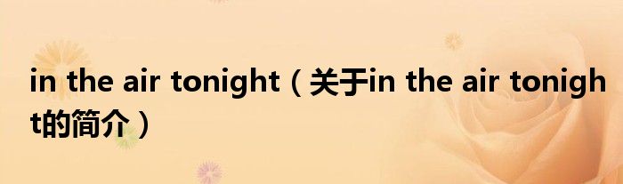 大家好,in the air tonight,關于in the air tonight的簡介很多人還不知道,現在讓我們一起來看看吧!