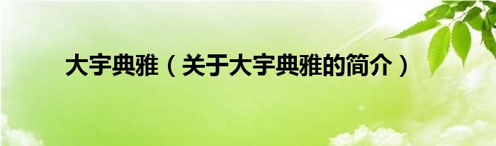 大家好,大宇典雅,關(guān)于大宇典雅的簡介很多人還不知道,現(xiàn)在讓我們一起來看看吧!
