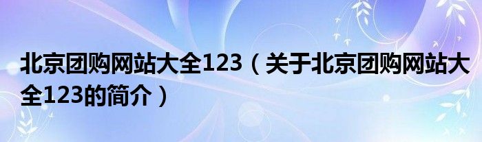 本文關于北京團購網站大全123的簡介就講解完畢,希望對大家有所幫助。