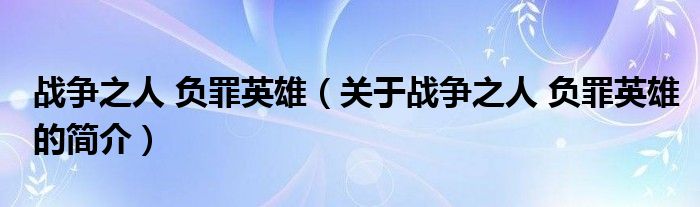 大家好,戰(zhàn)爭(zhēng)之人 負(fù)罪英雄,關(guān)于戰(zhàn)爭(zhēng)之人 負(fù)罪英雄的簡(jiǎn)介很多人還不知道,現(xiàn)在讓我們一起來(lái)看看吧!