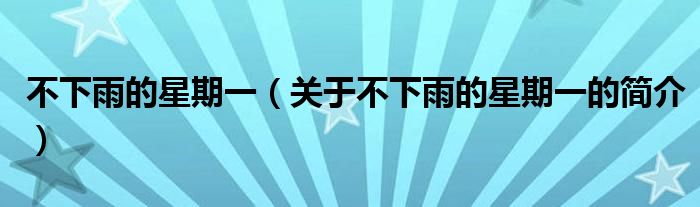 大家好,不下雨的星期一,關(guān)于不下雨的星期一的簡介很多人還不知道,現(xiàn)在讓我們一起來看看吧!