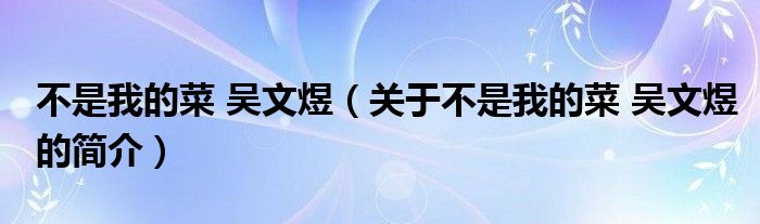 本文關于不是我的菜 吳文煜的簡介就講解完畢,希望對大家有所幫助。