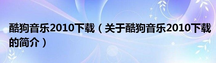 本文關于酷狗音樂2010下載的簡介就講解完畢,希望對大家有所幫助。