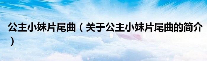 本文關于公主小妹片尾曲的簡介就講解完畢,希望對大家有所幫助。