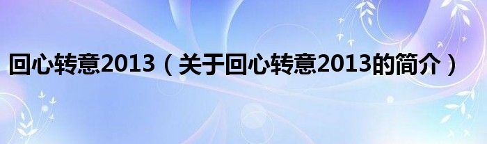 本文關于回心轉意2013的簡介就講解完畢,希望對大家有所幫助。