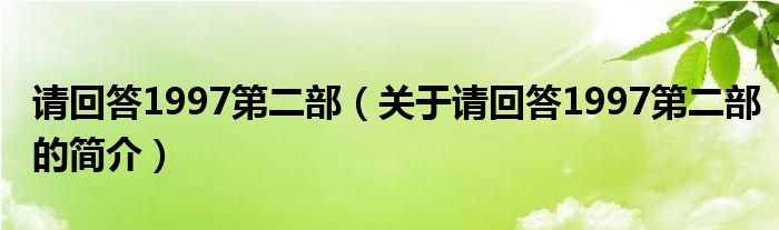 本文關于請回答1997第二部的簡介就講解完畢,希望對大家有所幫助。