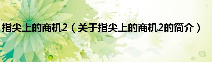 本文關于指尖上的商機2的簡介就講解完畢,希望對大家有所幫助。