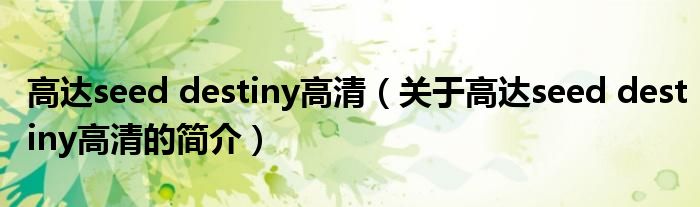 本文關于高達seed destiny高清的簡介就講解完畢,希望對大家有所幫助。