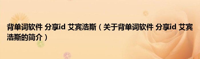 本文關(guān)于背單詞軟件 分享id 艾賓浩斯的簡(jiǎn)介就講解完畢,希望對(duì)大家有所幫助。