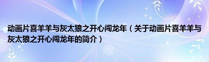 本文關(guān)于動畫片喜羊羊與灰太狼之開心闖龍年的簡介就講解完畢,希望對大家有所幫助。