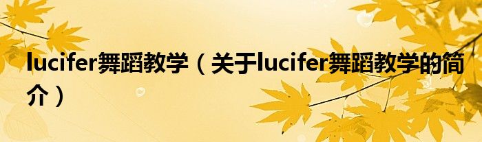 本文關(guān)于lucifer舞蹈教學(xué)的簡介就講解完畢,希望對大家有所幫助。