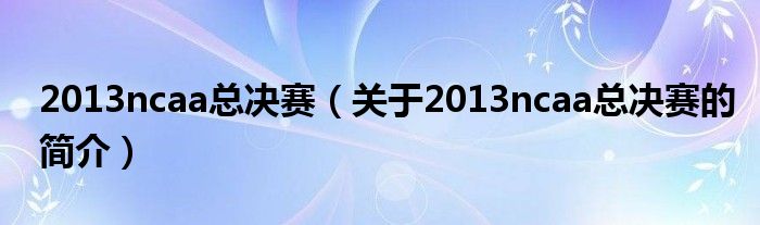 本文關(guān)于2013ncaa總決賽的簡介就講解完畢,希望對(duì)大家有所幫助。