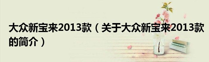 本文關于大眾新寶來2013款的簡介就講解完畢,希望對大家有所幫助。