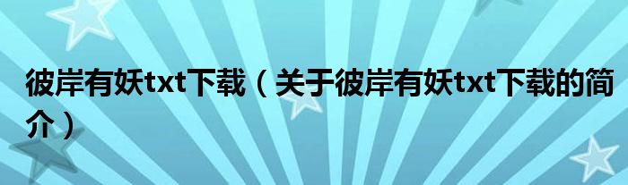 本文關(guān)于彼岸有妖txt下載的簡介就講解完畢,希望對(duì)大家有所幫助。