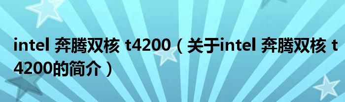 本文關于intel 奔騰雙核 t4200的簡介就講解完畢,希望對大家有所幫助。