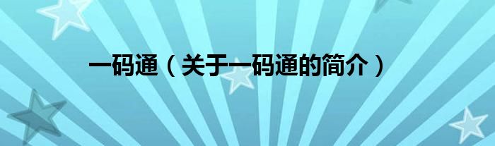 大家好,一碼通,關于一碼通的簡介很多人還不知道,現在讓我們一起來看看吧!