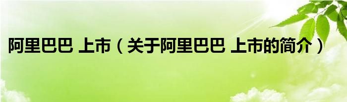 大家好,阿里巴巴 上市,關于阿里巴巴 上市的簡介很多人還不知道,現在讓我們一起來看看吧!