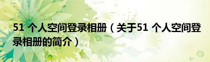 本文關于51 個人空間登錄相冊的簡介就講解完畢,希望對大家有所幫助。