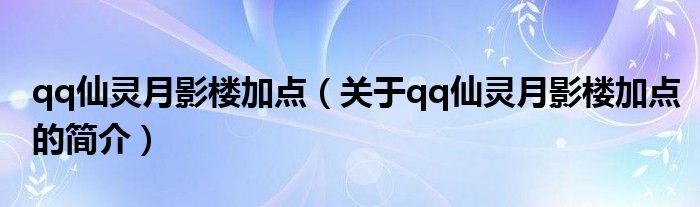 本文關于qq仙靈月影樓加點的簡介就講解完畢,希望對大家有所幫助。