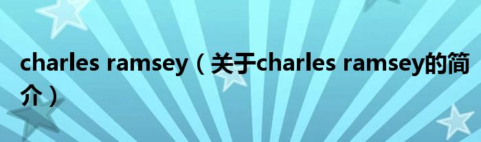 大家好,charles ramsey,關于charles ramsey的簡介很多人還不知道,現在讓我們一起來看看吧!