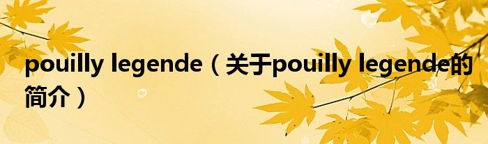 大家好,pouilly legende,關于pouilly legende的簡介很多人還不知道,現在讓我們一起來看看吧!
