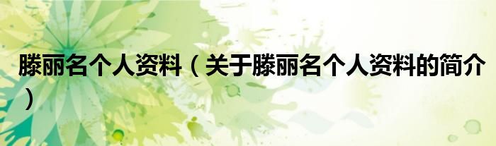 本文關于滕麗名個人資料的簡介就講解完畢,希望對大家有所幫助。