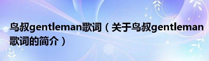 本文關(guān)于鳥叔gentleman歌詞的簡(jiǎn)介就講解完畢,希望對(duì)大家有所幫助。