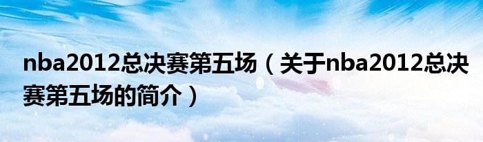 本文關于nba2012總決賽第五場的簡介就講解完畢,希望對大家有所幫助。