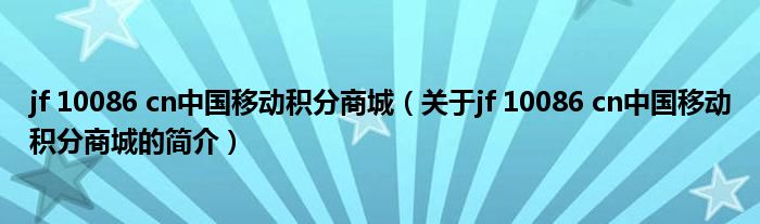 本文關(guān)于jf 10086 cn中國移動(dòng)積分商城的簡介就講解完畢,希望對(duì)大家有所幫助。