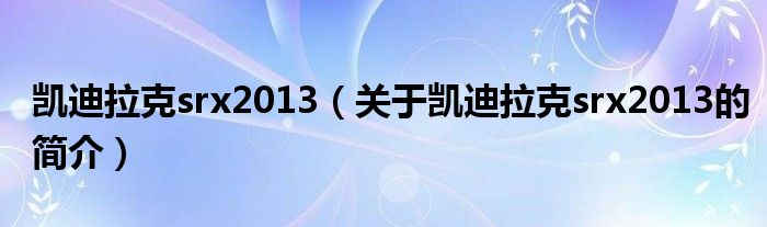 本文關于凱迪拉克srx2013的簡介就講解完畢,希望對大家有所幫助。
