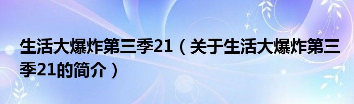 本文關于生活大爆炸第三季21的簡介就講解完畢,希望對大家有所幫助。