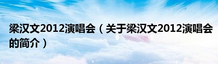 大家好,梁漢文2012演唱會,關于梁漢文2012演唱會的簡介很多人還不知道,現在讓我們一起來看看吧!
