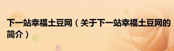 大家好,下一站幸福土豆網,關于下一站幸福土豆網的簡介很多人還不知道,現在讓我們一起來看看吧!