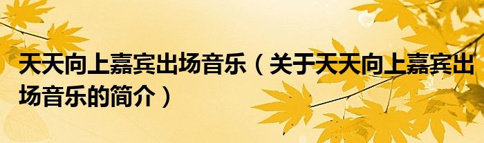 本文關于天天向上嘉賓出場音樂的簡介就講解完畢,希望對大家有所幫助。