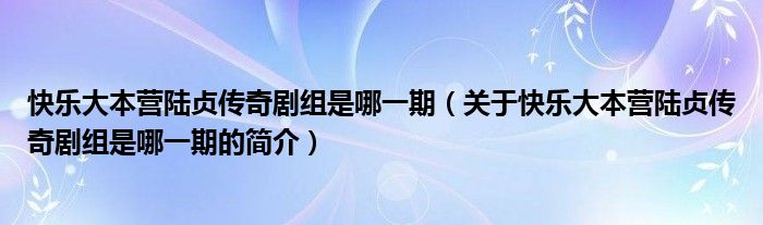 大家好,快樂大本營陸貞傳奇劇組是哪一期,關于快樂大本營陸貞傳奇劇組是哪一期的簡介很多人還不知道,現在讓我們一起來看看吧!