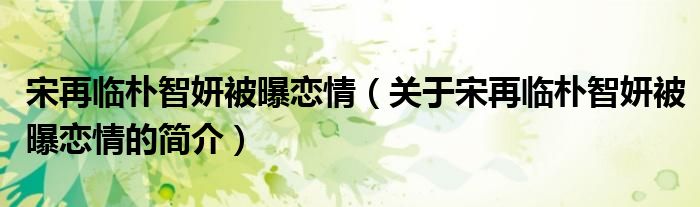 本文關于宋再臨樸智妍被曝戀情的簡介就講解完畢,希望對大家有所幫助。